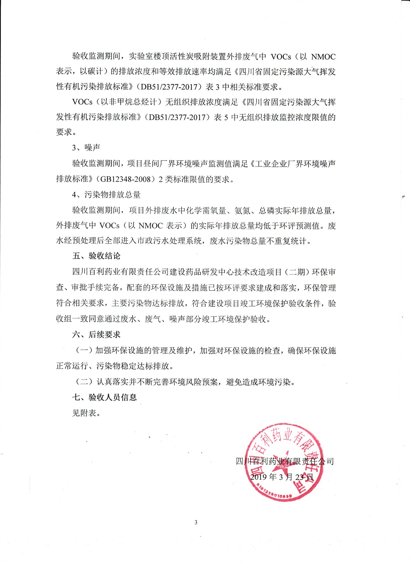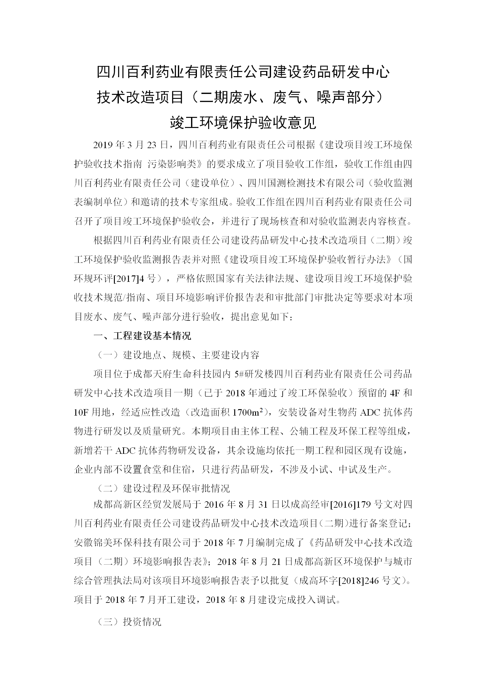 根据《国务院关于建设项目竣工环境保护管理条例的决定》以及环保部《建设项目竣工环境保护验收暂行办法》的公告(国环规环评[2017]4号)现将《四川常州承泽环保材料销售有限公司有限责任公司药品研发中心技术改造项目(二期)竣工环保验收监测报告》及验收意见公示如下: